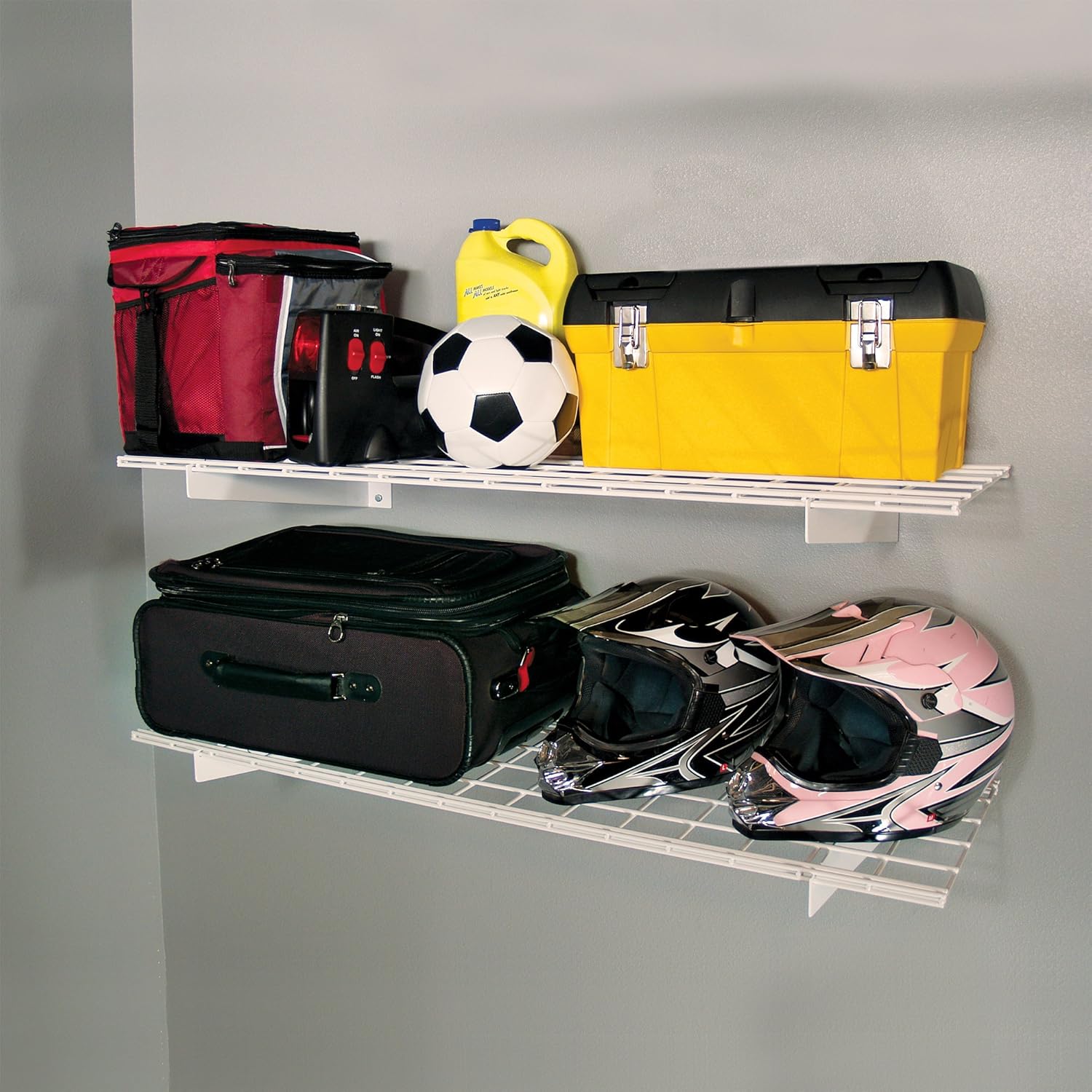 - Space-Saving Design: The low-profile brackets maximize your storage area, allowing for easy placement of oversized items and optimizing space efficiency in your garage, laundry room, or any area in need of some extra space; plus, this shelf is compatible with Hyloft's 00212 accessory hook for extra organization