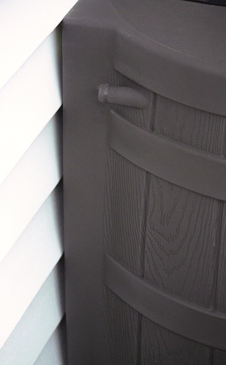 - Ensure a backup water supply for your home using the faux wood rain barrels to collect rainwater from the gutter, made of durable plastic that resists weather and UV damage