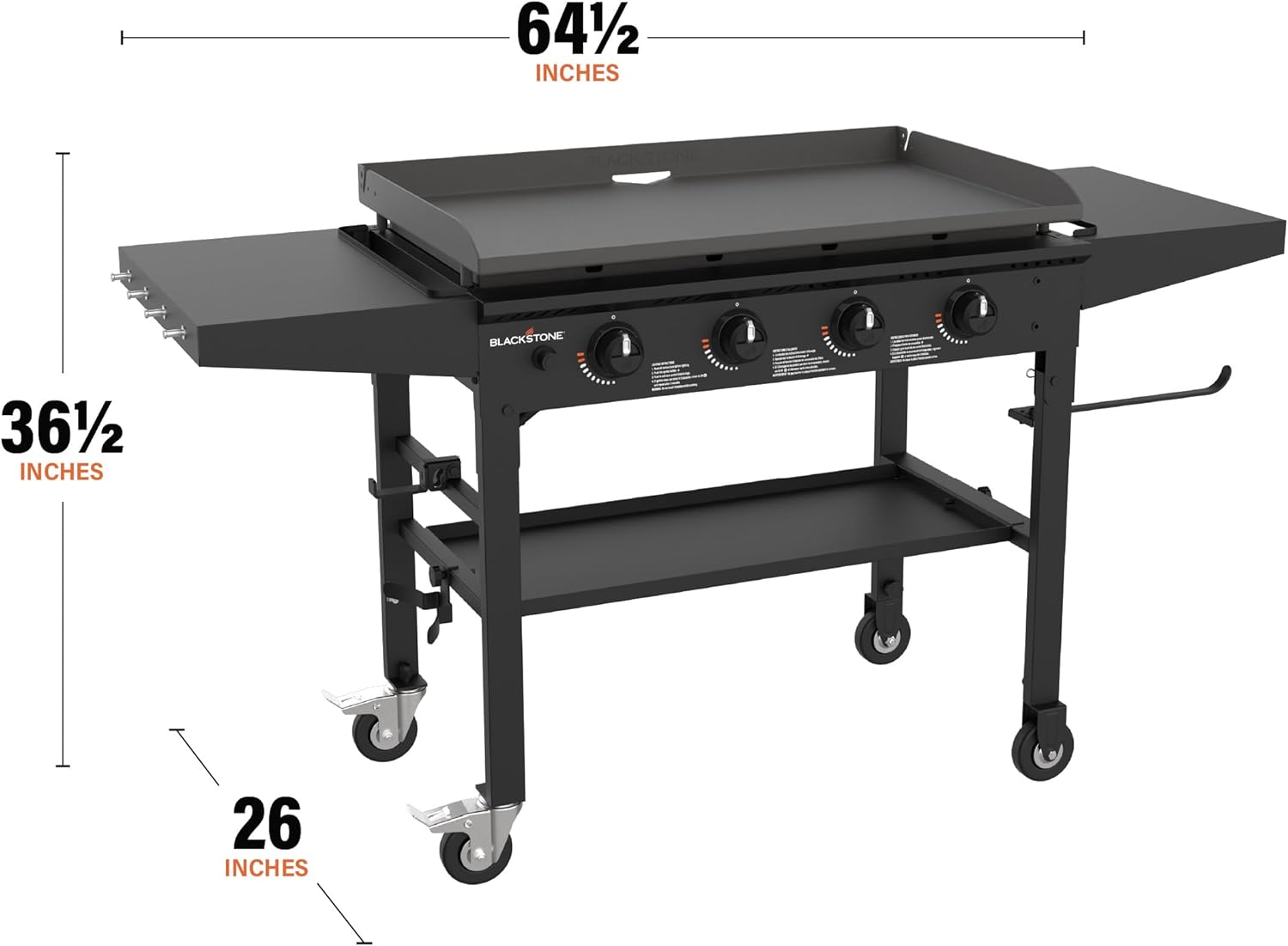 - Easy Grease Cleanup: This flat top grill is equipped with the Blackstone-patented Rear Grease Management System. Simply guide food debris and grease to the back of the griddle to collect in the rear grease cup for easy disposal