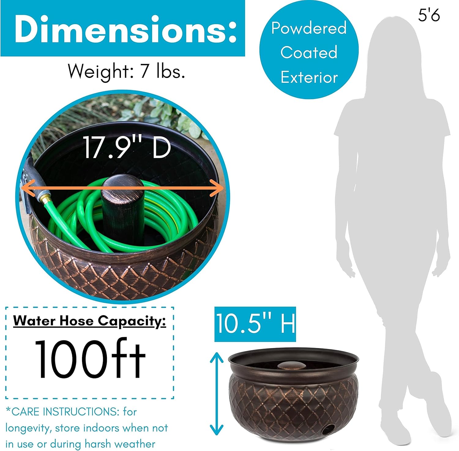 - DECORATIVE AND FUNCTIONAL: This 17.9"L x 17.9"W x 10.5โH water hose holder adds an attractive touch to your backyard, patio, or deck while keeping your hose neatly hidden and protected from dirt and dust.