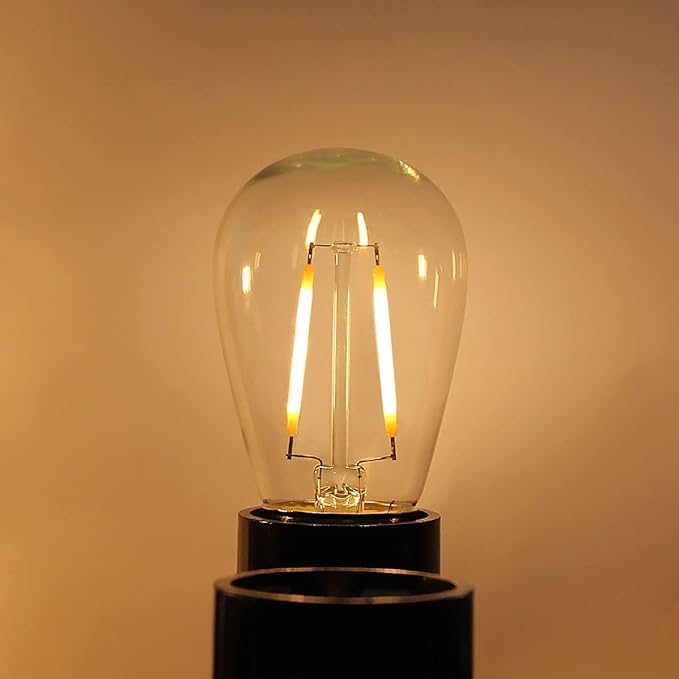 - ๐กใ2W Replacement BulbใS14 LED light bulbs 2watt, E26 medium screw base, durable plastic bulb shell, dimmable, to replace 15w to 25w S14 bulbs. 2700K soft warm white color will provide you with a cozy and romantic environment. LED filament technology, vintage look, great for weddings, parties and garden decoration.