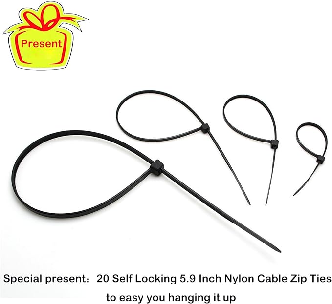- Special Present for U: For the sake of easy installation, we provide 20 Self Locking 5.9 Inch Nylon Cable Zip Ties for our this 50Ft string lights.