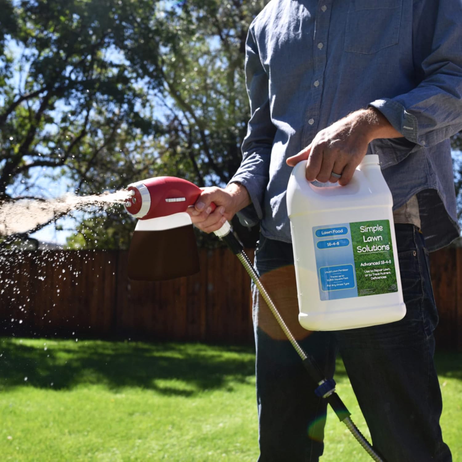 - 1 Gallon Size covers 12,800 square feet. This complete Nitrogen, Phosphate, and Potash formula gives your grass nutrients for greening & growth while providing nutrients for roots, and strength. Use once a month alongside your regular fertilizer program