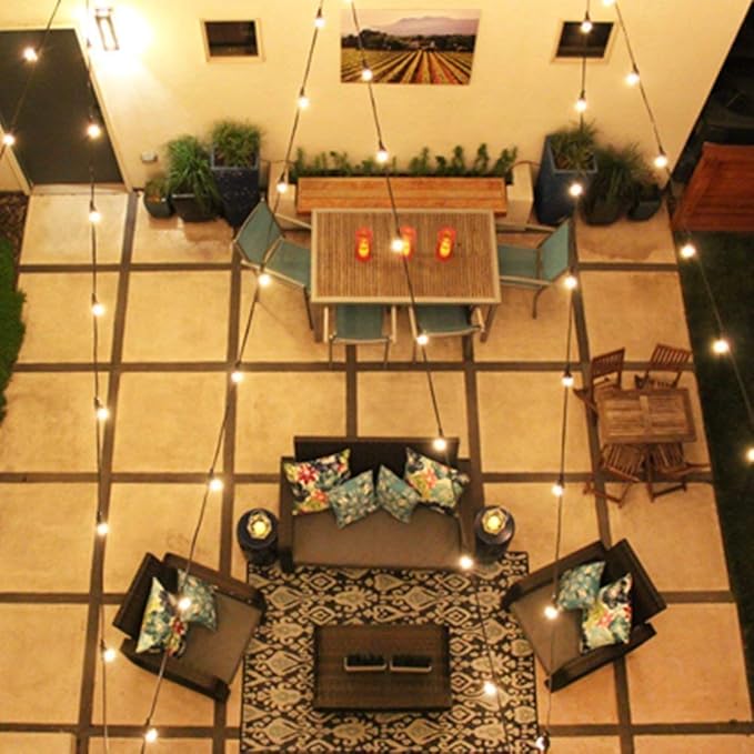 - Indoor decorations string lights glow with a warm white , dimmable outdoor lights provide soft warm lighting, which perfect to decorate your patio, backyard, porch, pergola, bistro and pools. creating atmosphere for a birthday party, family reunion, wedding reception, holiday celebration, garden, tents, gatherings, cafe decor, enjoy the romanstic time with you family and friends.