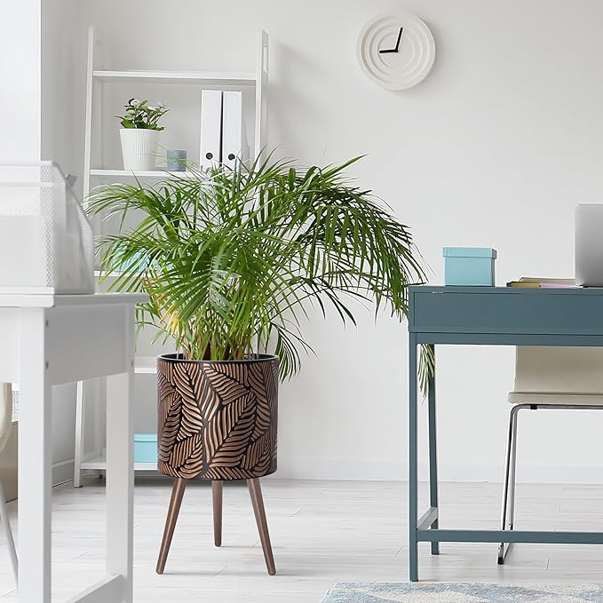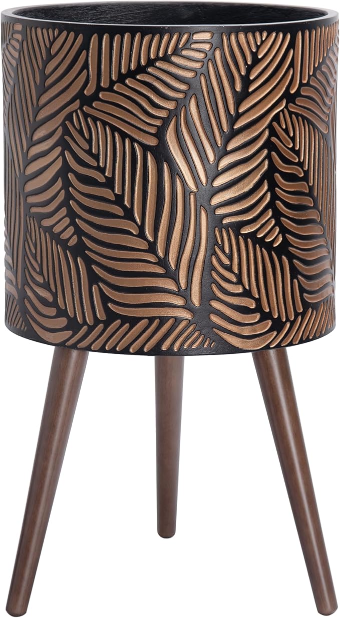 D'vine Dev 14 Inch Planter Pot with Stand, Mid-Century Tall Plant Pot with Legs for Indoor Plants, X-Large, Bronze/Grey, 88-L-D-6