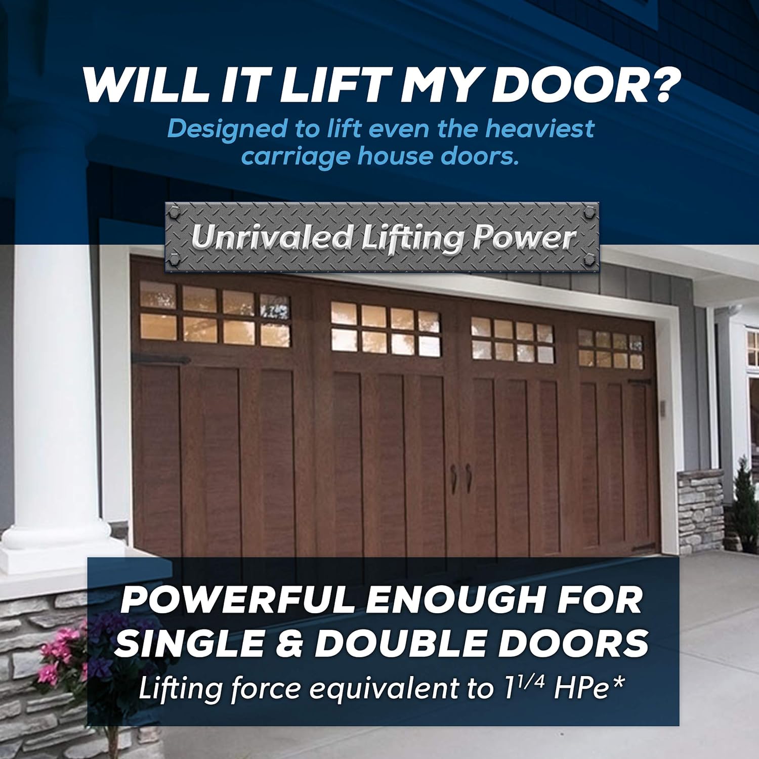 - HEAVY-DUTY GARAGE MOTOR: With 1-1/4 Horsepower equivalent DC motor & steel-reinforced garage door opener belt drive, this motor is powerful enough to open up to 7' tall garage door. Say goodbye to chain rattle & embrace lasting safety, reliability, & security