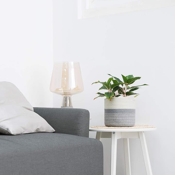 - Adorable Size:This cute cotton rope basket is 7.5"(L) ร8"(W) ,fits from 6" up to 7" flower pot. This hand woven basket winding beige bottom and waist adds a stylish touch to your favorite lovely plant for home, offices, and nursery with modern simplicity. The tinny baskets warm up a room,great for your little items,you can store anything small in it. Notice: Pot and plants are not included in the basket.