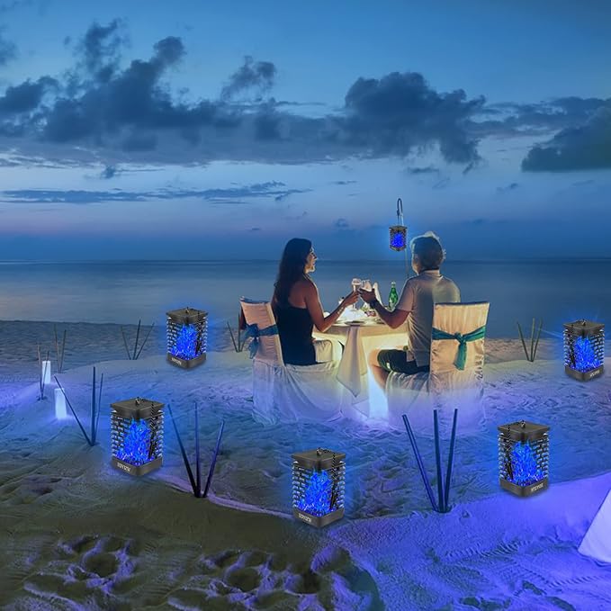EOYIZW 99 LED Solar Lantern Flickering Flame Lights - 2 Pack Waterproof Garden Lights for Patio Yard Porch Lawn Decorations - Blue Solar Lanterns