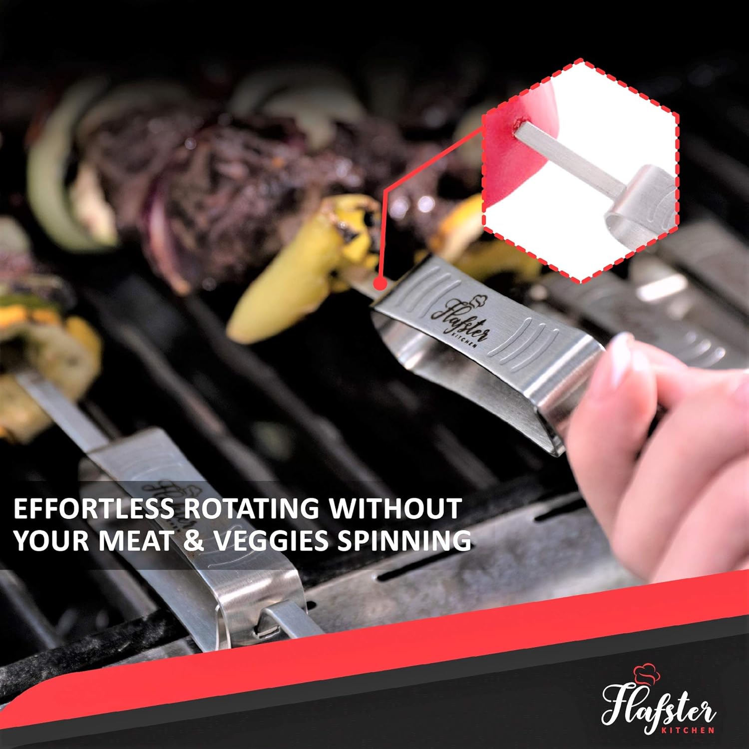 - HIGH QUALITY: Made with high quality stainless steel 304 unlike other skewers made with inferior Stainless Steel 430 that rusts easily; Our food skewers pass in-house quality inspection as well as a third party quality inspection to ensure you get only the best; The sturdy design ensures you will use the barbecue skewers for years to come