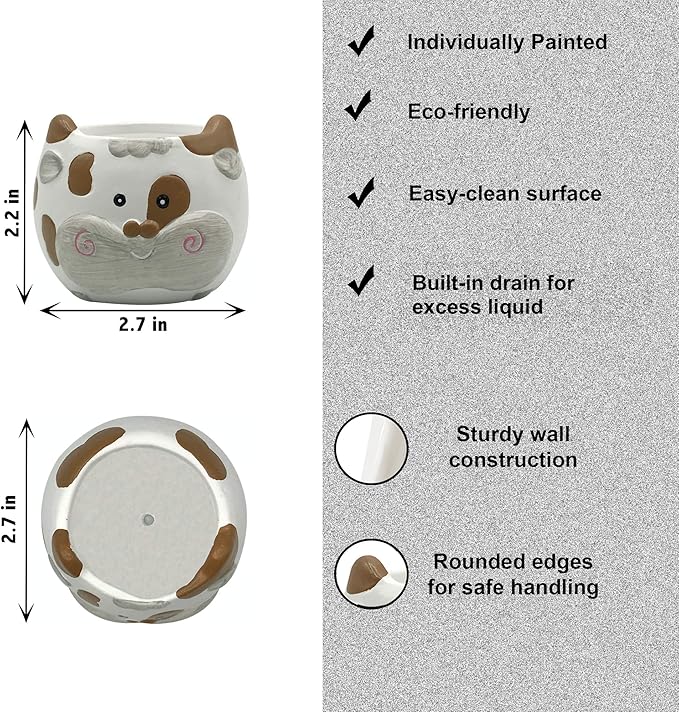 - ✅INTEGRATED DRAIN HOLES protect plants from overwatering, allowing you to grow an array of small plants with confidence. Scatter them around your home as part of your overall cow decor or create a window garden of herb planters in your kitchen.