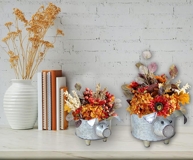 Galvanized Metal Pig Succulent Planter Farmhouse Pig Shaped Bowl Metal Pig Tray Rustic Decor Set of 2
