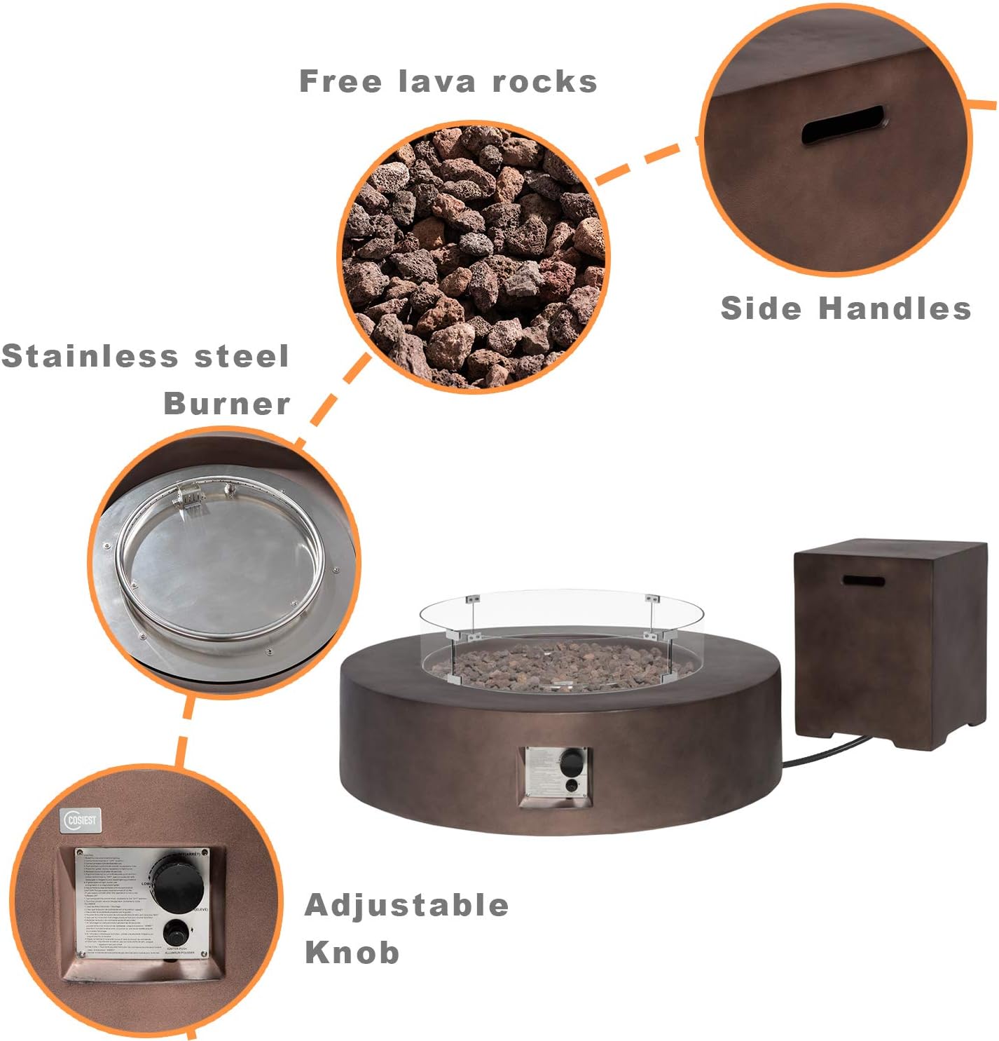 - 🔥 【 Spacial Economy 】: Large enough coffee table surface to set your coffee or nightcap. The unit has a 40.5-inch diameter and is just 12-inch from the ground for an almost sunken feeling. The fire bowl itself is 30-inch diameter. The tank cover has a 16-inch square footprint and is 20-inch from the ground, a perfect size for a modern deck! They don't call us " COSIEST" for nothing!