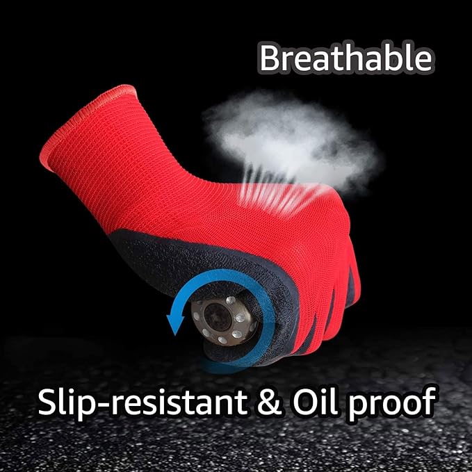 - TEXTURED COATING: Latex/rubber palm and finger crinkle coating, provides Anti-slip, Cut and Puncture resistant and repels light liquids