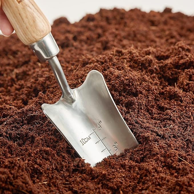 Berry&Bird Transplant Trowel with Measurements, Garden Stainless Steel Potting Hand Trowel with Wooden Handle, Small Garden Hand Shovel Transplanter Tool for Planting Digging Transplanting Gardening
