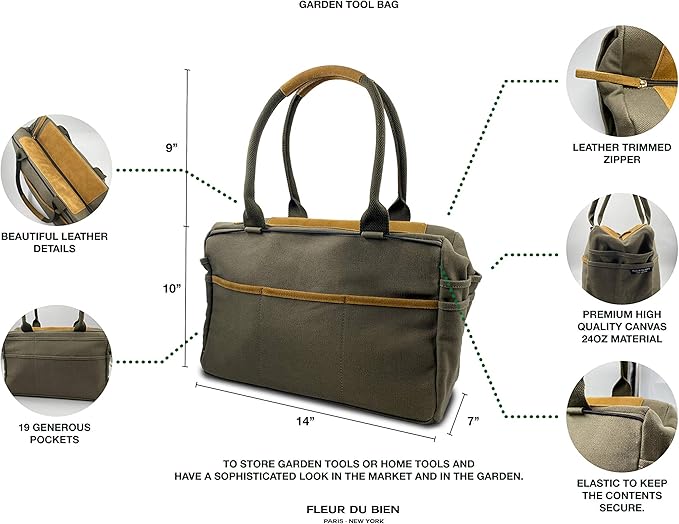 - KEEP EVERYTHING ORGANIZED: With 19 pockets and a 24oz large capacity, our gardening canvas tote bag gives you all the space you need to keep your tools organized. Itโs made using durable canvas material thatโs both dirt and water resistant