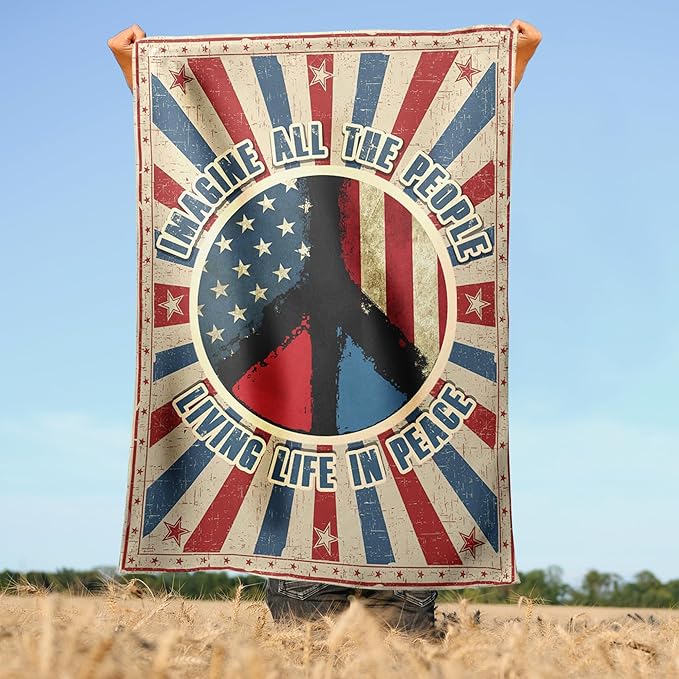 Hippie Peace Flags, Peace Signs Decorations For Home, Outside Hippie Decor House Flag (30 x 40), Imagine All The People Living Life in Peace Flag, USA House Garden Flags, Decorative Outdoor Flags