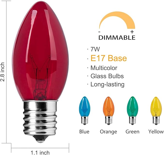 - Long lasting life: 7W 120V bulbs last for 3000 hours