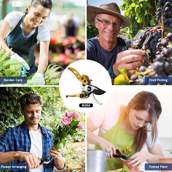 - π πππ π¦π π’π’π§π & πππππ‘ ππ¨π§ - Premium bypass alloy steel blade ensure that each cut is smooth and clean without hurting the stems and branches of your plants.