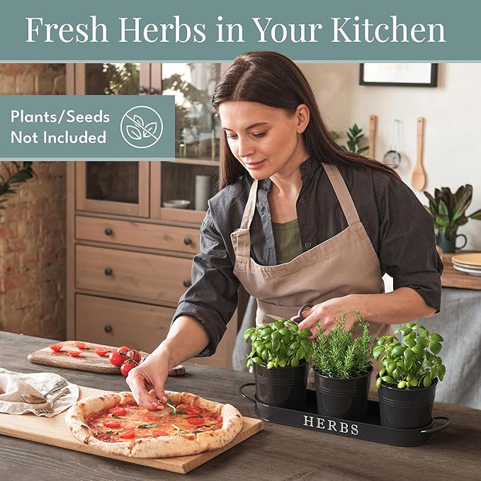 - Indoor Herb Garden Planter with Tray - Add greenery to your home with this vintage metal windowsill planter. Herb planters for indoor plants with a farmhouse touch. Place the indoor herb planter on your kitchen counter or display the small herb planter as an apartment window planter.