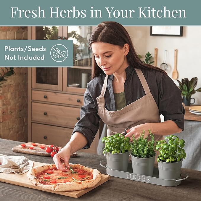 - Indoor Herb Garden Planter with Tray - Add greenery to your space with this vintage metal windowsill planter. Herb planters for indoor plants with a farmhouse touch. Place the indoor herb planter on your kitchen counter or display the small herb planter as an apartment window planter.