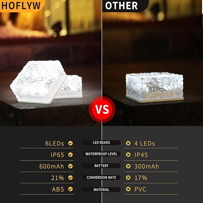 - Easy to use Solar Brick Light: Our Solar Ice Cube Lights Outdoor Waterproof are easy to install without wiring, and the automatic light sensor will automatically turn them on and off. Please remember to turn on the switch to "ON" after receiving this LED landscape light to make sure it is It can be charged under the sun and light up your yard when night falls. With an IP65 waterproof rating, it can withstand any harsh weather conditions.
