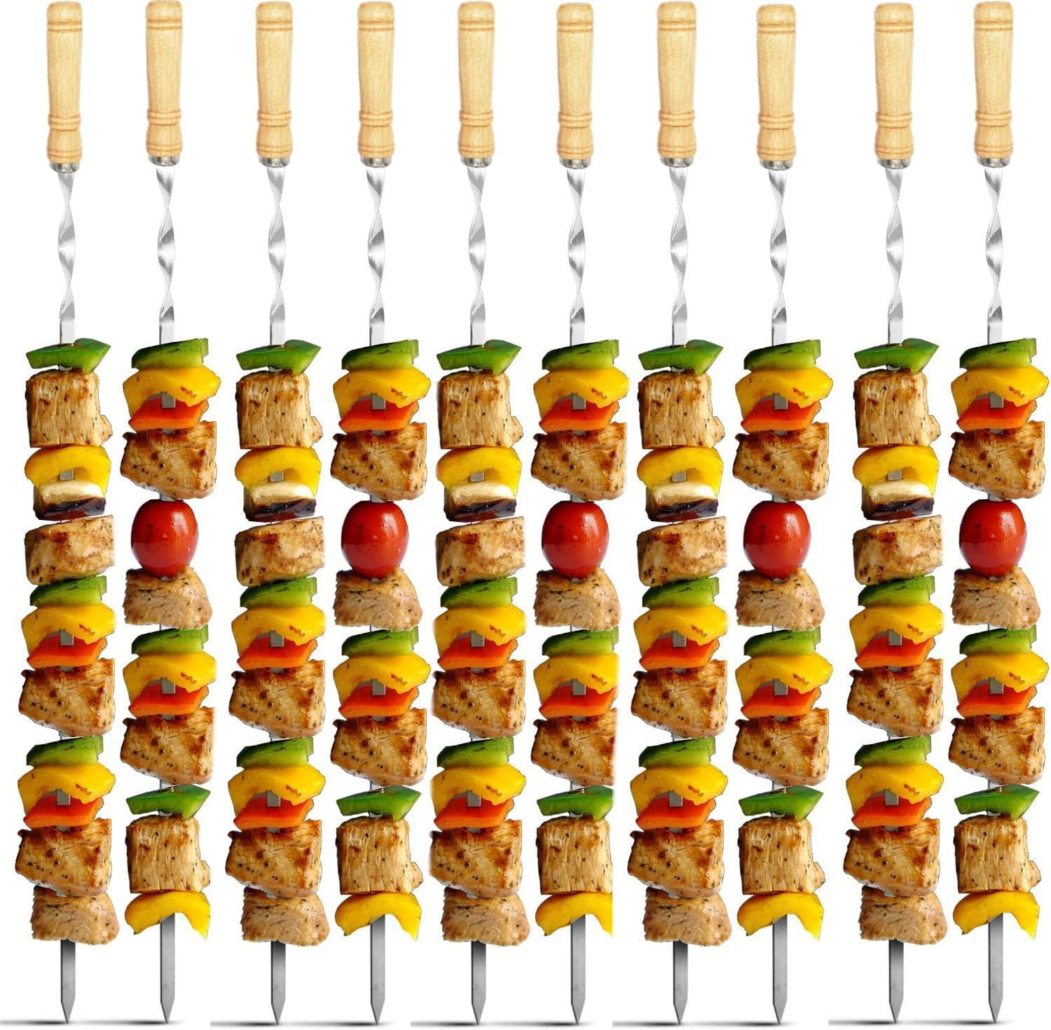 - Nonslip Wooden handle-the end of each barbecue skewers have a nonslip wood handle that helps you better hold, turn and control each bbq stick with your fingers. Ideal for smores on the campfire