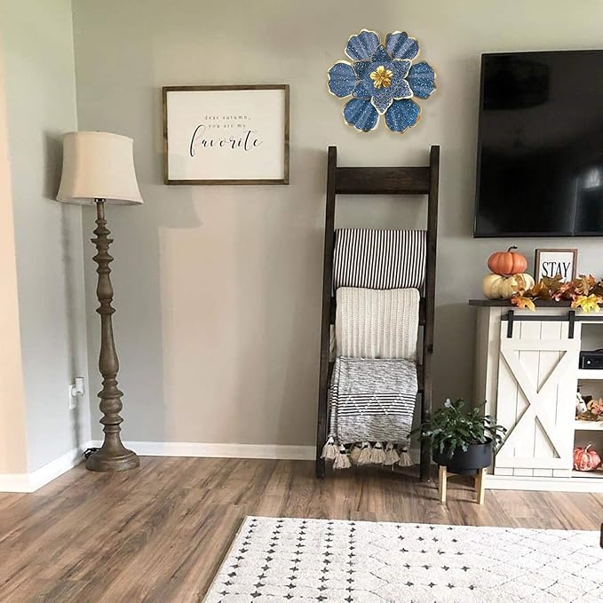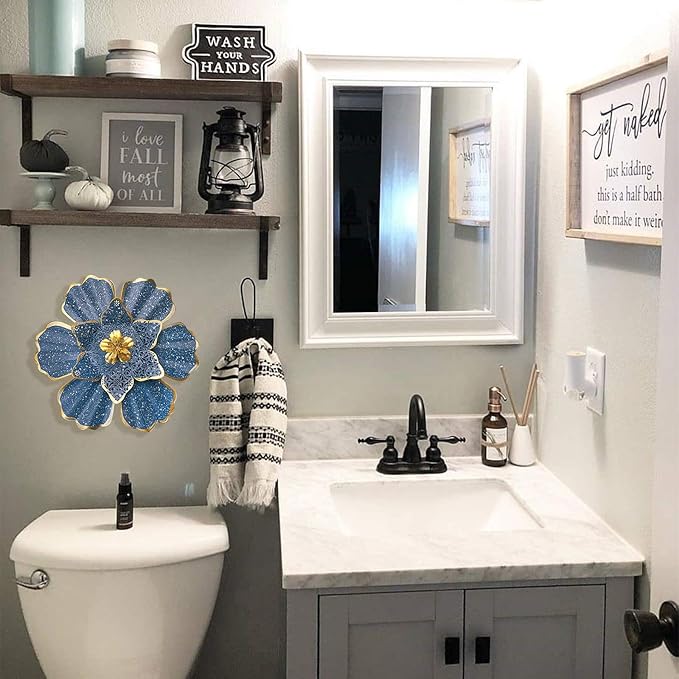 - 【WIDELY APPLICATION】This metal wall art is a dimensional blooming flower with a bright and vibrant Blue. The metal flower wall art will add a splash of color for Bathroom Patio Fence Garden Bedroom Living Room, and more.