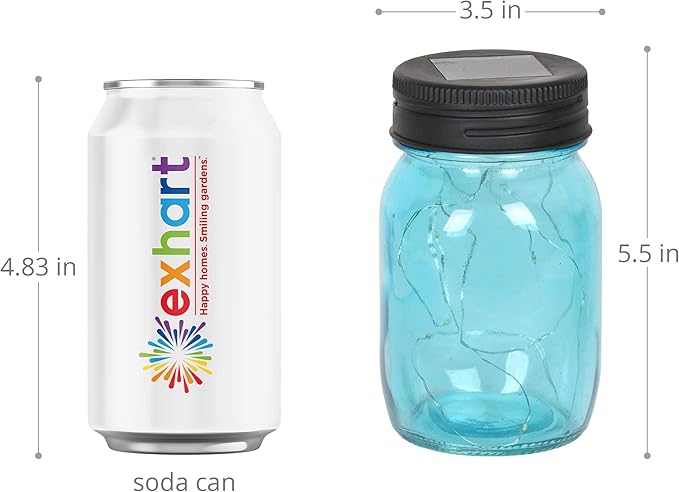 - VINTAGE SOLAR MASON JAR SET: Add vintage farmhouse decor and add an enchanting glow to your home garden area with this elegantly designed 3 piece LED glass mason jar lamp decoration set. Each decorative lighting mason jar includes a lid, measures 5.5 inches tall, and the set comes with a blue, green, and clear glass jar, providing a charming way to add decoration to any living space