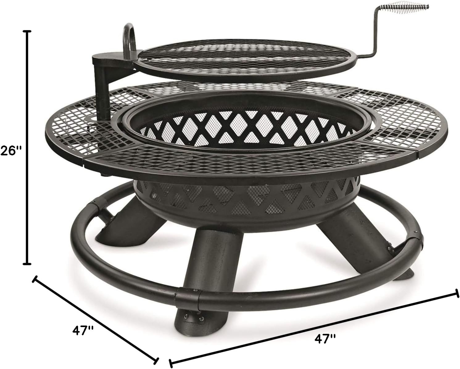 Castlecreek 47" Fire Pit BBQ Grill Outdoor Wood Burning Steel Log Firepit for Camping, Grilling, Smores, Yard, Cooking Outside, Barbecue, Bonfire Geometric