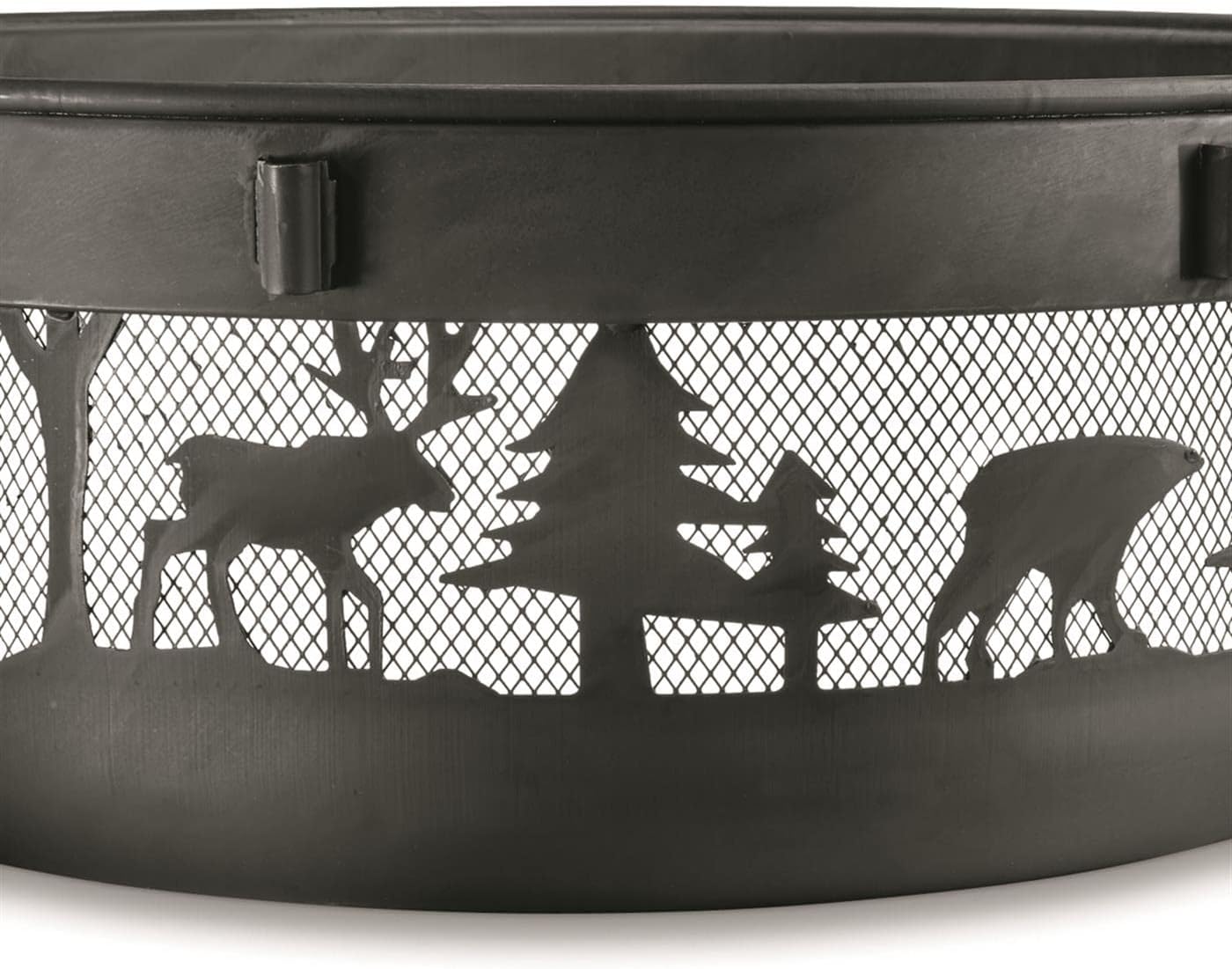- HIGH-TEMPERATURE RESISTANT β Durable steel fire pit with bbq grate with high-temperature-resistant surface treatment able to withstand high heat.