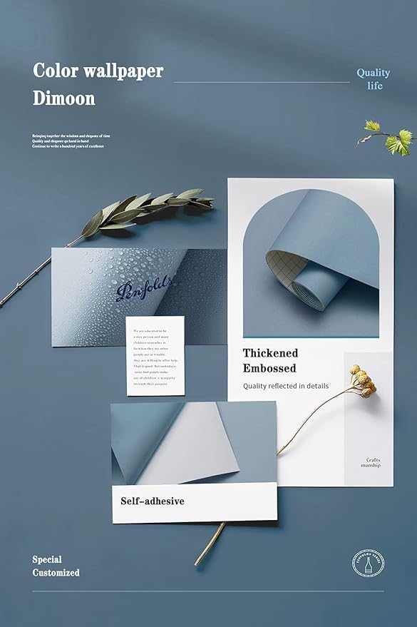 Dimoon 394''x17.7'' Blue Peel and Stick Wallpaper Contact Paper Modern Self Adhesive Wall Paper Removable Renter Friendly Textured Solid Color Shelf Cabinet Vinyl Roll (394''x17.7'',Blue Grey)