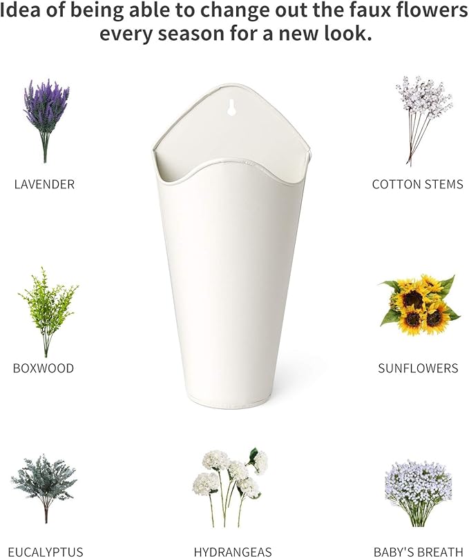 - MULTIFUNCTIONAL DECOR PURPOSE: Galvanized Metal Wall Plant Container Rustic wall decor in your home, planters are great for displaying artificial greenery plants, faux flowers,seasonal decorations, lavender,foliage,eucalyptus plants, or cotton๏ผideas are endless.