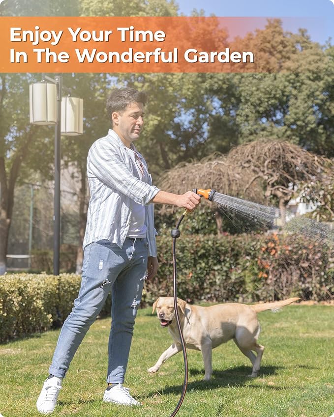 - 【9-pattern Nozzle】9 Patterns nozzle available to have different spray ways which includes shower, center, flat, soaker, mist, jet, triangle, rinse and cone.