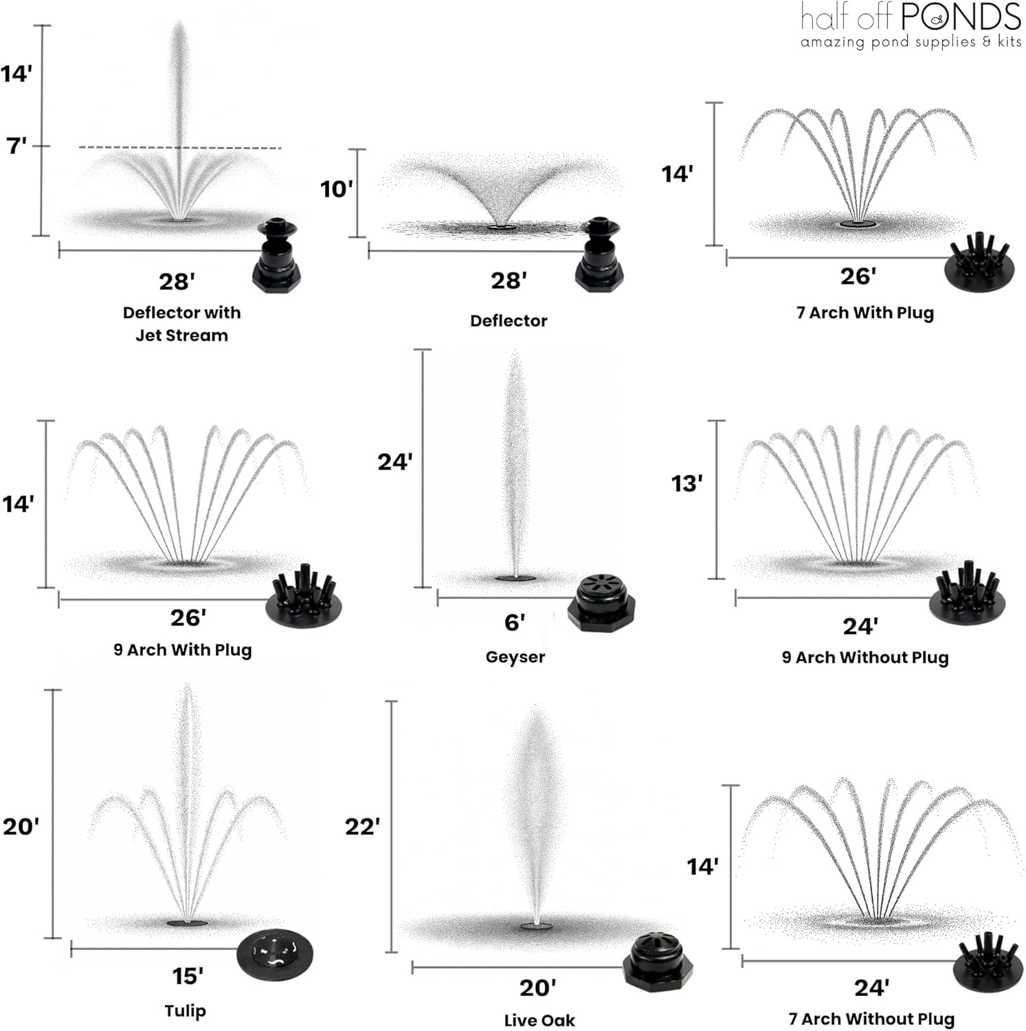 - Customizable Spray Patterns – Includes a quick-release nozzle flange and 11 interchangeable fountain spray patterns to enhance your landscape and match your pond’s style.