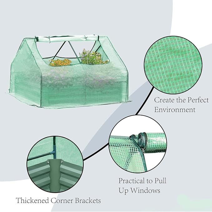 Aoodor 4 x 3 x 3 ft Raised Metal Garden Bed, Mini Greenhouse Kit with 2 Roll-up Zipper Doors for Vegetables, Herbs, and Flowers