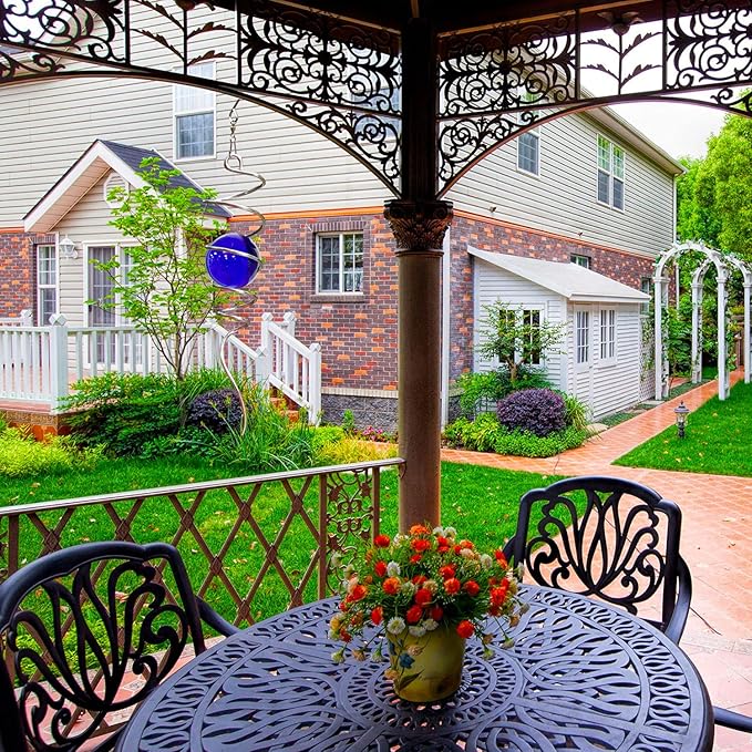 FONMY Gazing Ball Spiral Tail -Decorative Wind Spinner 11" inch Tail and 2" inch Blue Glass Orb. Indoor Outdoor Garden Decoration -13 inch Height