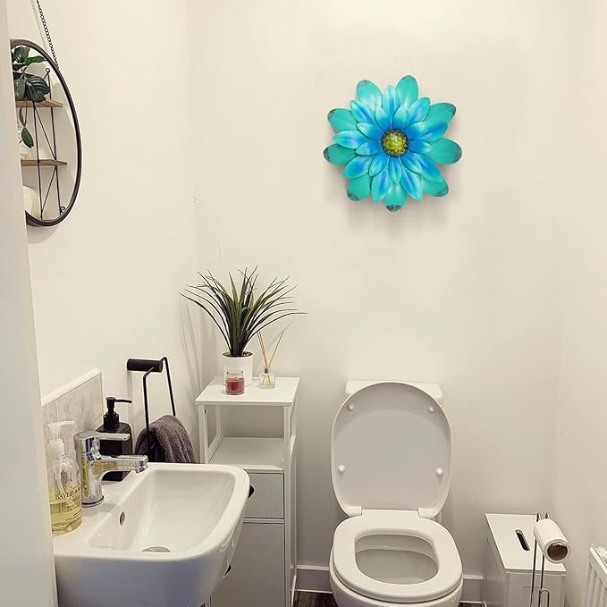 - 【WIDELY APPLICATION】This metal wall art is a dimensional blooming flower with a bright and Blue, The metal flower wall art will add a splash of color for the bathroom kitchen room bedroom living room garden patio porch office and more.