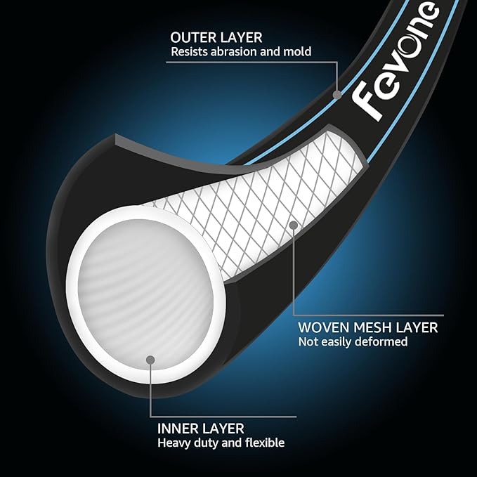 Fevone 100 ft Garden Hose, 2-Year Warranty, Heavy Duty Water Hose, Hybrid Polymer, Kink Resistance, Flexible, Durable, Solid Brass Fittings, 3/4" GHT, 5/8" ID, 600 PSI,