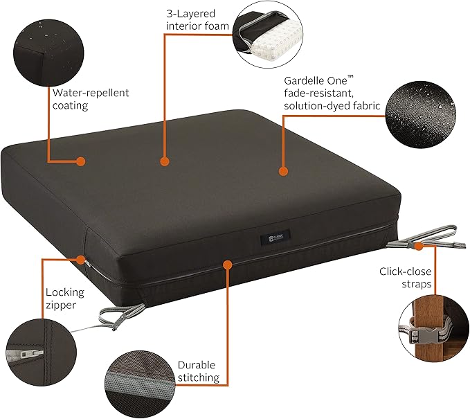 - WATER-REPELLENT COATING AND BACKING: Water-repellent coating resists stains and helps keep rain out and your cushion foam protected