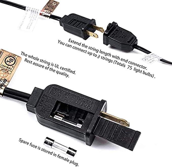 - 🧡End to End Connectable: Halloween c7 clear orange lights black Wire with 25 hanging socket, Commercial grade Heavy Duty 20 gauge outdoor wire can cannect up 432 Watt. 6 ''lead with mal plug, 12 ''spacing between bulbs, 6 '' tail with female connector, total length 25 feet Halloween orange lights connect up to 3 strands. C7 Christmas lights embellish your life with color to make it more meaningful and bring joy to the festival.