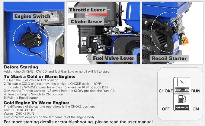 - Industrial Powerhouse - Our engine provides unwavering strength to tackle any task. Fuel Shut Off and gas-saving overhead valves maximize efficiency. The easy-reach recoil starter system features auto-decompression, ensuring effortless starts.