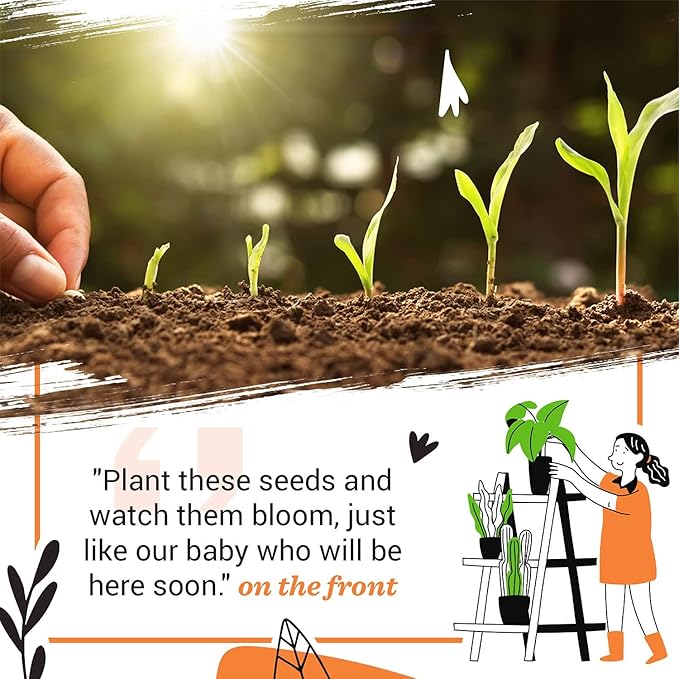 - WOODLAND BABY SHOWER: Add these fantastic party favors to your woodland or earth theme baby shower. Each envelope measures 3.25 inches wide x 4.50 inches tall. The quote on the front states, "Plant these seeds and watch them bloom, just like our baby who will be here soon." These beautiful blue seed cards can be used in any baby boy or baby girl shower theme.