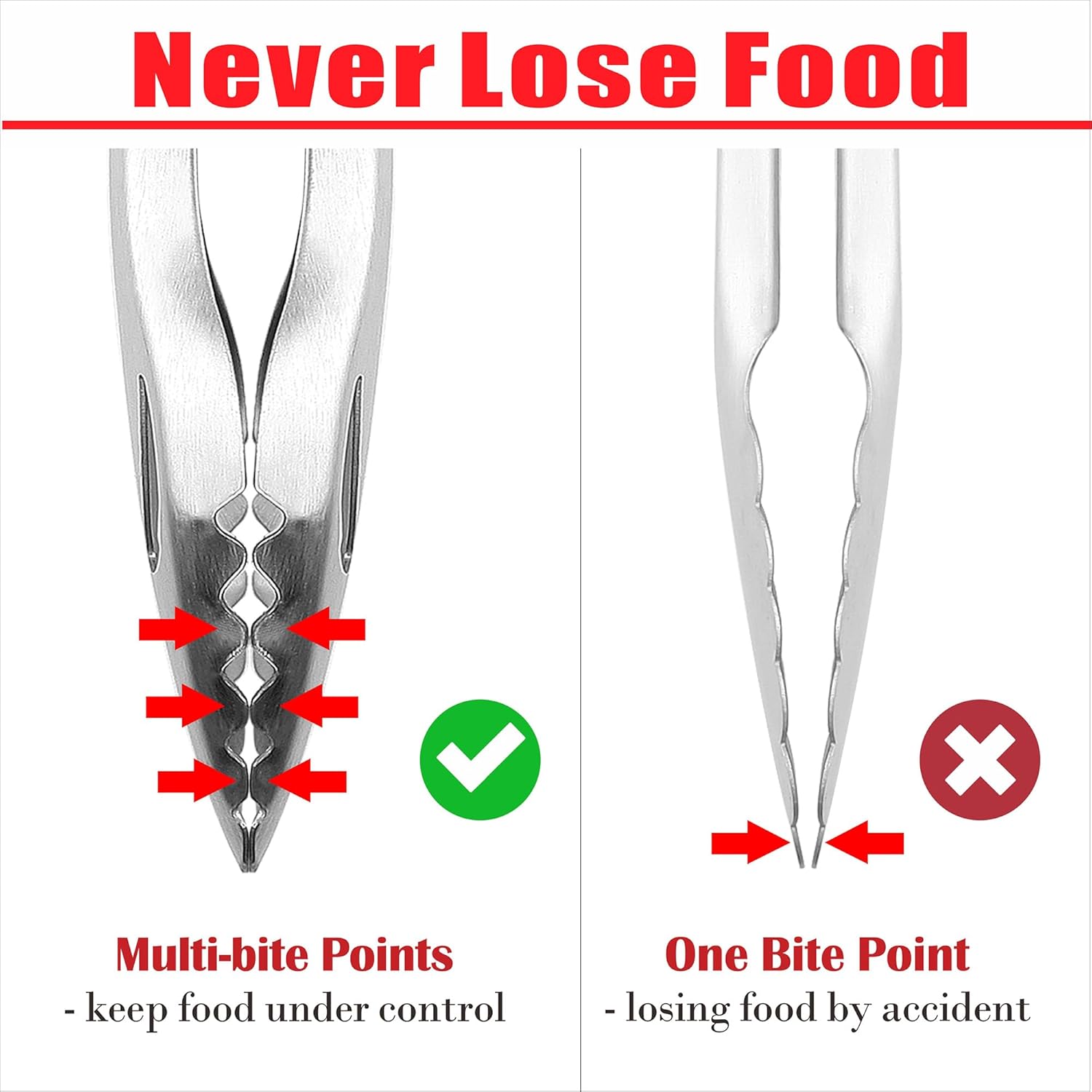 - All under control - creative tooth-like head tongs: Our newly designed tongs can provide greater control over food, such as being able to bite food of any size more accurately, easily and safely without tearing, falling or feeling laborious -exactly something thatโs difficult for common scalloped head tongs to achieve, but itโs also the most basic function a good BBQ tongs must meet. Just as a painter needs his brush, a grill master needs the right grill tongs. With us, you can never go wrong!