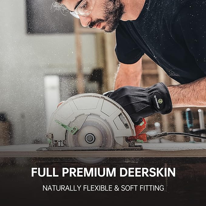 - Deerskin Leather Work Gloves - North American original genuine deerskin leather, nature tanning, comfortable and durable. High quality thick deerskin material, superior abrasion and puncture resistance, protect your hands from cuts and scratches
