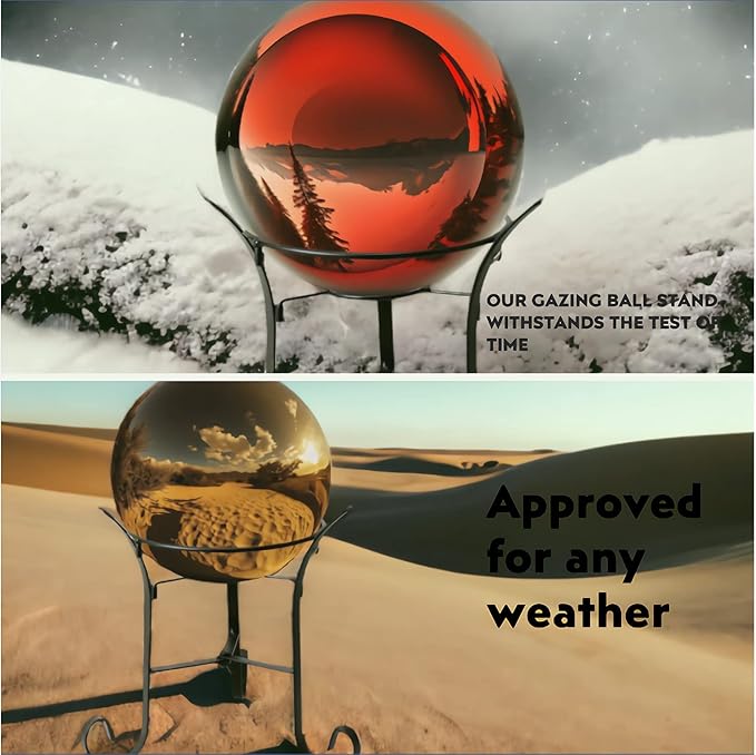 - STUNNING SPHERE STAND - Black finish will match any gazing globe no matter what the color! Itโs a striking ornament in the garden, can be placed on a patio, deck, front porch, lawn, It brings a romantic to your garden year after year. It approved for outdoor with no worry about weather condition.