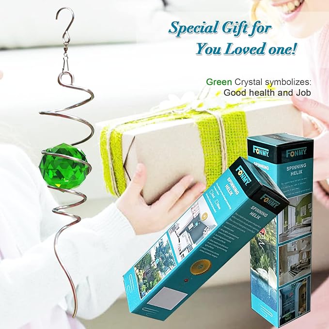 - 【PREMIUM CRYSTAL SUNCATCHER】The spiral with crystal is a special sun catcher rainbow maker, it’s Super Sparkly under sunshine. You can also add a motor(not include) to let the spiral to spin ,while spiral tail rotating (it can’t spin by itself.), the crystal ball seems to move up and down like floating and dancing in air while spiral tail rotating, presents the magical visual illusion.