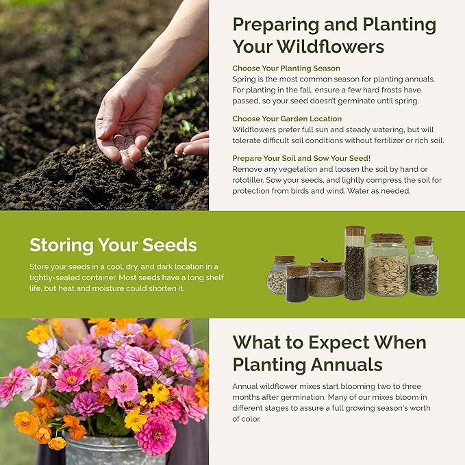 - Attracts Pollinators - With up to 1,200 square feet of ground cover, this non-GMO seed mix is sure to bring the bugs and birds to your yard! Easily attract bees, butterflies, and hummingbirds to pollinate blooms.