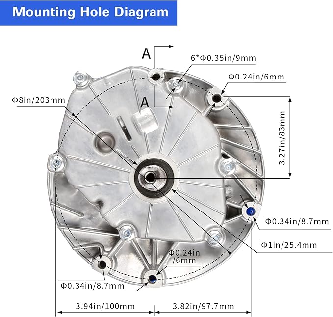 - Precision Shaft Specifications - Dive into the specifics of our engine with a 7/8-inch diameter shaft measuring 3.16 inches in length. The end is meticulously tapped with 3/8-inch - 24 UNF threads, further enhanced by a 3/16-inch keyway. The mounting pattern spans 8 inches, while the engine features a 3/8"-24 UNF tapped hole and a 0.079 x 0.34-inch through-hole.