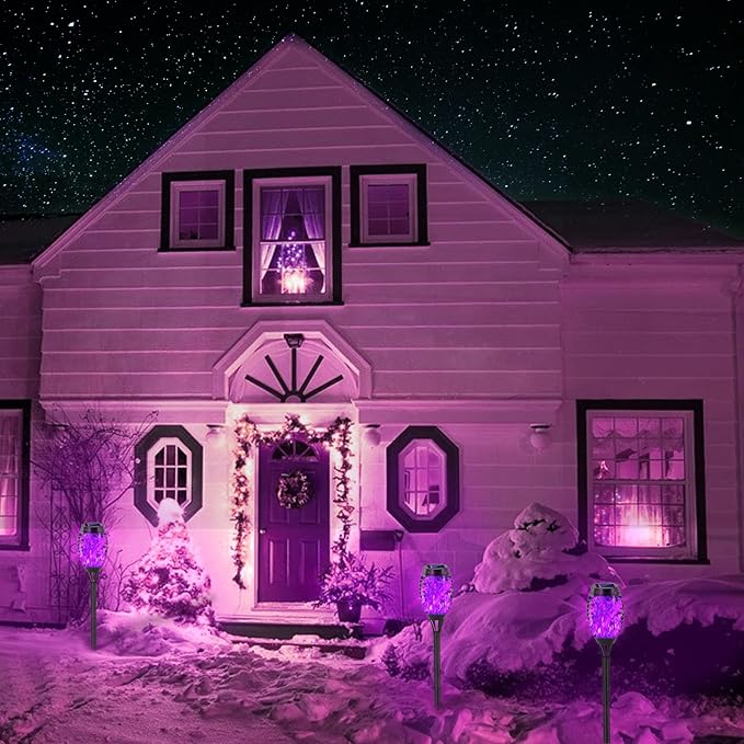 EOYIZW Solar Outdoor Lights, 8 Pack Purple Halloween Decorations Outdoor, Waterproof Mini LED Solar Tiki Torches for Outside Light for Halloween Garden Yard Porch Lawn Decor