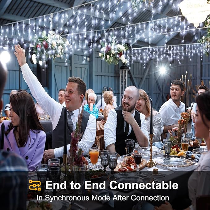 - 【Connectable & Waterproof】 Each icicle Christmas lights comes with end-to-end connector, maximum of 3 strings can be connected.This icicle lights outdoor is waterproof for outdoor use, so don't worry about it getting wet in rain or snow.Just protect the plug from the water.This icicle fairy lights is your best choice for Outdoor Indoor Christmas decorations.